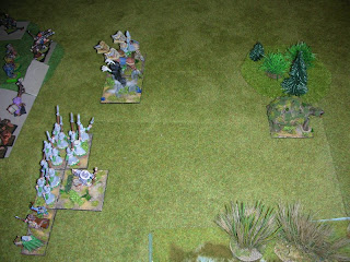 Counterpart the evil Rats! Bottom a steep hill, above a normal one. From the bottom up 2 warbands, spear with magician behind, spear, spear and spear General, 2 shooters and above a Rat hero!